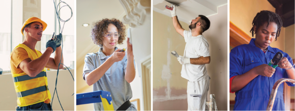 Une formation sur les métiers du second œuvre (peinture, placo, électricité, plomberie, sols, faïence...) pour un groupe de 12 stagiaires (femmes et hommes) avec :